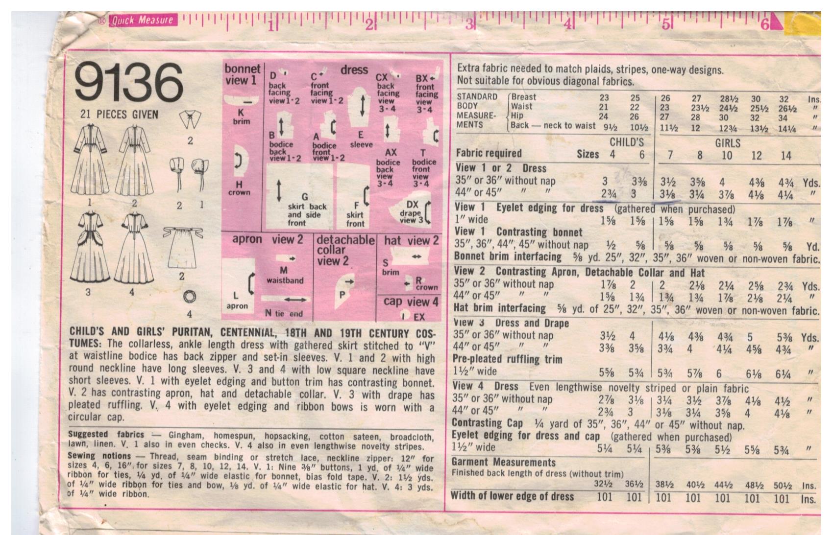 Simplicity Puritan Centennial 18 19th Century Costumes Sewing Pattern Age 8 9136 Ebay