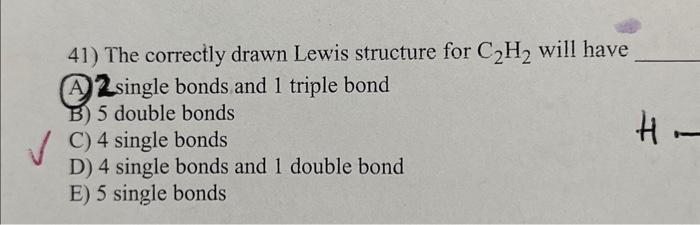 Solved 41 The Correctly Drawn Lewis Structure For C2h2 Will Chegg Com